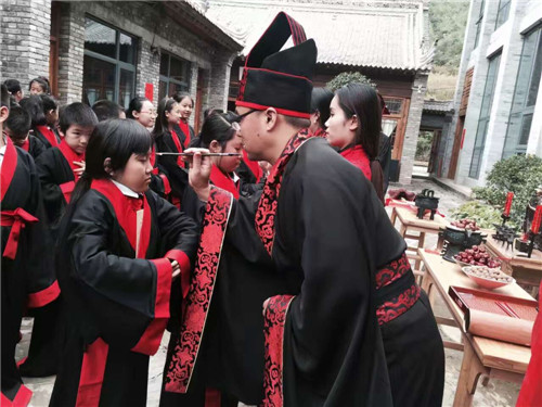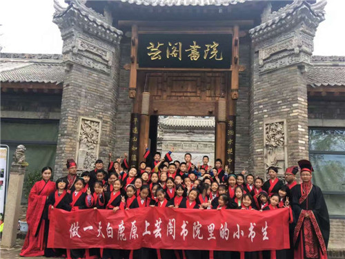 2016年10月14日,时逢金秋,我校组织四年级全体师生前往白鹿原芸阁书院开展了“做一天白鹿原上芸阁书院里的小书生”研学旅行活动 。此次活动的开展是为了使孩子们感受中国传统文化,了解家乡的历史人文,通过书院传统文化活动体验和白鹿原传统生活方式人文考察,希望埋下优秀传统文化和乡土文化的种子,帮助学生找到自己的文化之根。本次研学旅行通过入泮大礼、射礼研习、手绘秦腔脸谱、发现传统民居中的数学智慧、探知白鹿原的植物世界、舌尖上的白鹿原等一系列实践活动让孩子们充分感受到关中地区浓厚的历史传统文化,并带给我们的深深的自豪感。